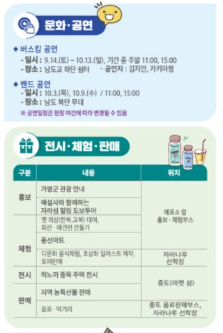 | 셔틀버스 | 가평역 ↔ 자라섬 (축제 기간 한정) |