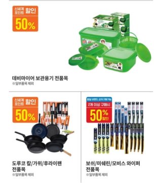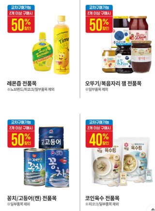 | 가공/생활 | 여름 라면, 냉동 간편식, 선크림, 제습제, 여름 침구 | 2개 구매 시 50% 할인, N+N 증정, 특정 브랜드 할인 |