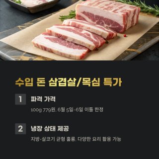 | 신선식품 | 자두, 수박, 한우, 활전복, 냉동 블루베리 | 최대 50% 할인, 1+1 행사, 카드사 할인 |